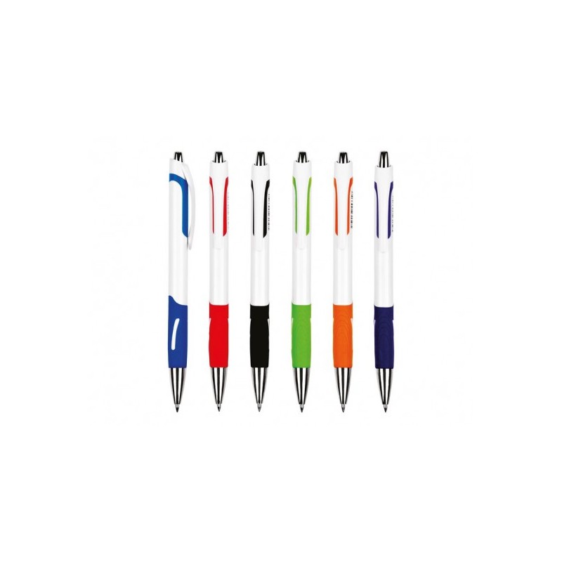 Kvalitné plastové pero s vymeniteľnou náplňou GP1801-1. Toto guľôčkové pero je ergonomicky tvarované a príjemne sedí v ruke. Spodná časť pera je pogumovaná, čím zabráni kĺzaniu pera v ruke.