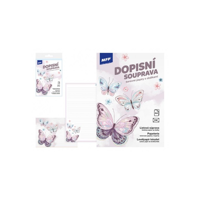 Listová súprava s obrázkom motýľa. Píšete radi listy svojim známym? Zaobstarajte si u nás krásne listové papiere s rôznymi motívmi a nezabudnite ani na písacie potreby.