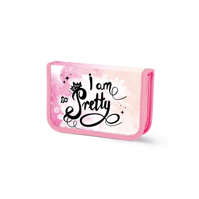 Jednoradový ružový školský peračník s textom „I am Pretty“ pre mladé slečny. Vo vnútri peračníka sú priehradky a pútka na písacie potreby. Peračník sa uzatvára zipsom a je z kvalitných a odolných materiálov.