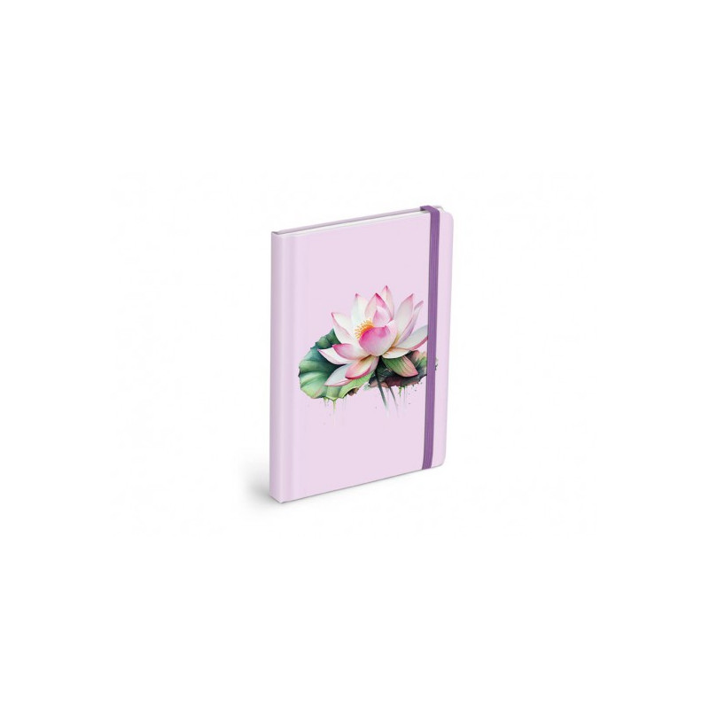 Linajkový poznámkový blok v pastelovej fialovej farbe s motívom lekna a zaoblenými rohmi. Nevyhnutná školská a kancelárska pomôcka! Blok je vybavený gumičkou proti samovoľnému otvoreniu.